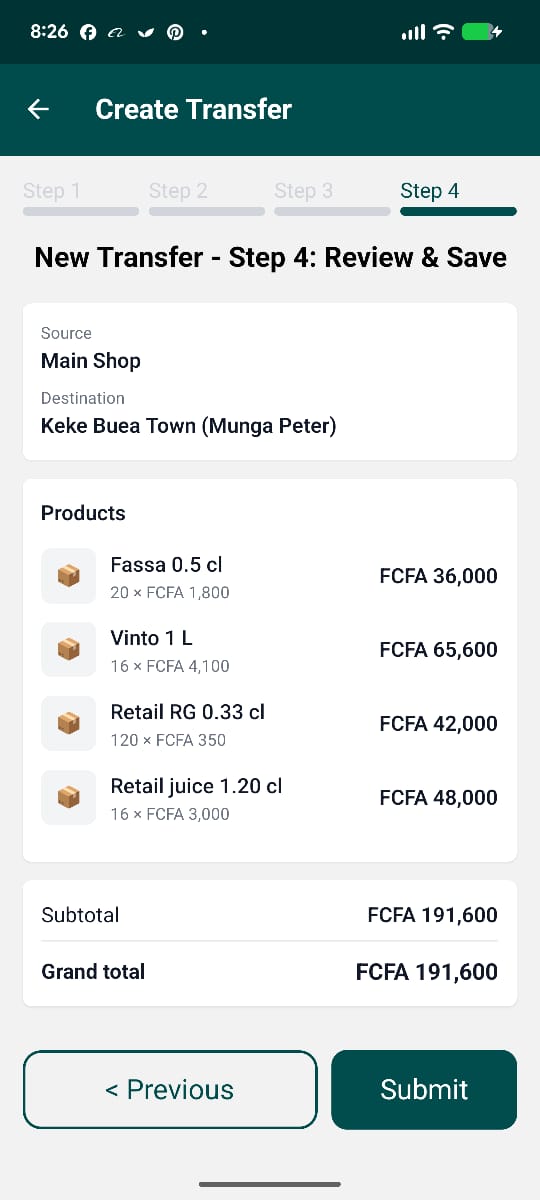 Because all sales and stock movements are already recorded in the system, the end‑of‑day process becomes simple. The owner can quickly compare what was transferred, what was sold, and what remains with each driver without going through long notebooks or manual calculations.