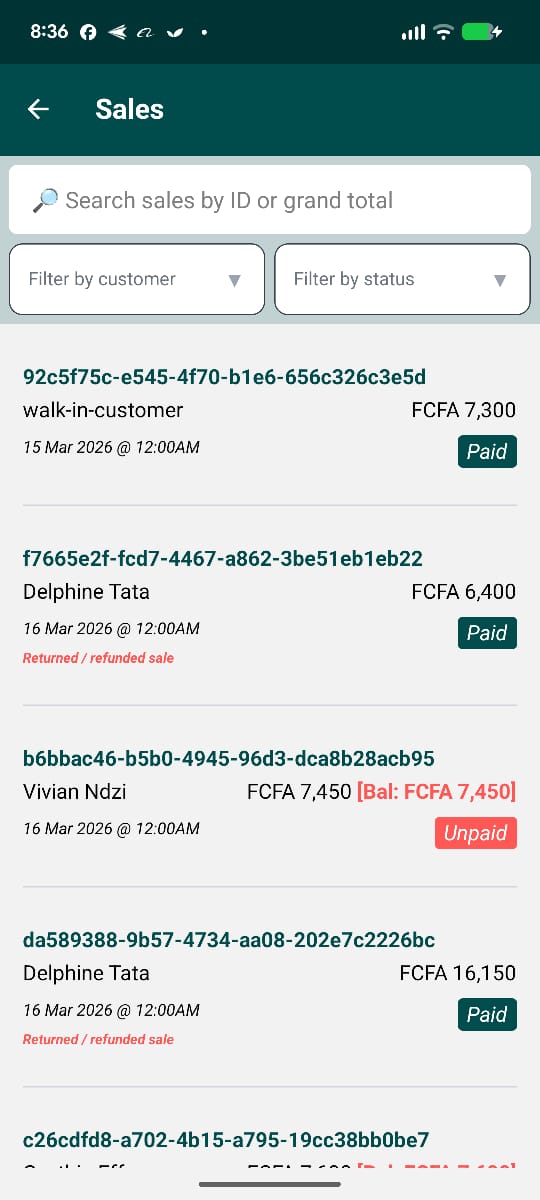Later, whenever the phone briefly connects to the internet — even for a few seconds — TCPoS automatically synchronizes the data with the main system. All the sales, payments, and outstanding debts recorded during the day are uploaded and become visible to the depot owner.